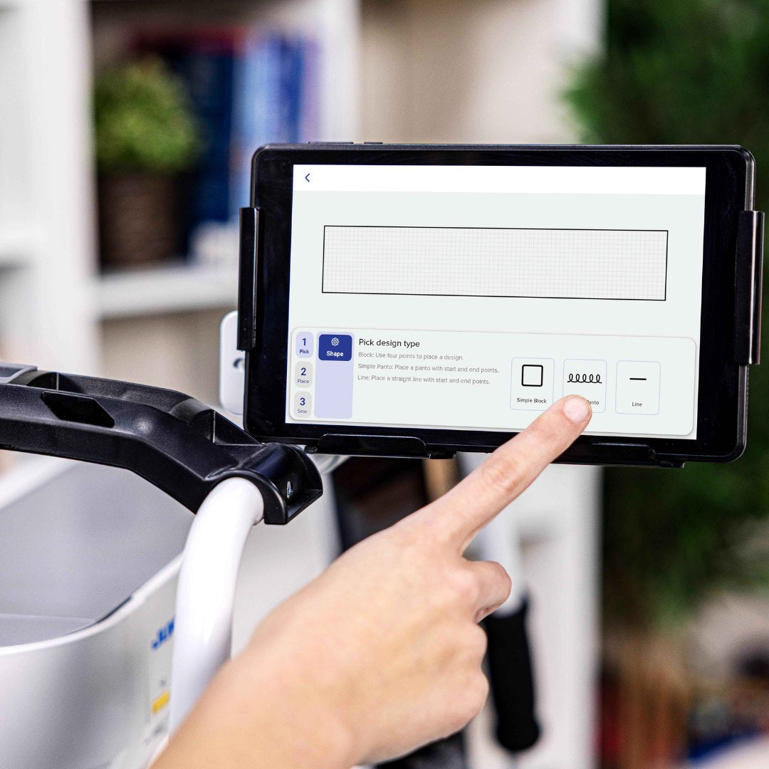 Step 1 - Pick a Design. Choose a pantograph, block design, or straight line from the QMX app. There are 20 designs included with the program, and more are available through Grace Company's Design Store.